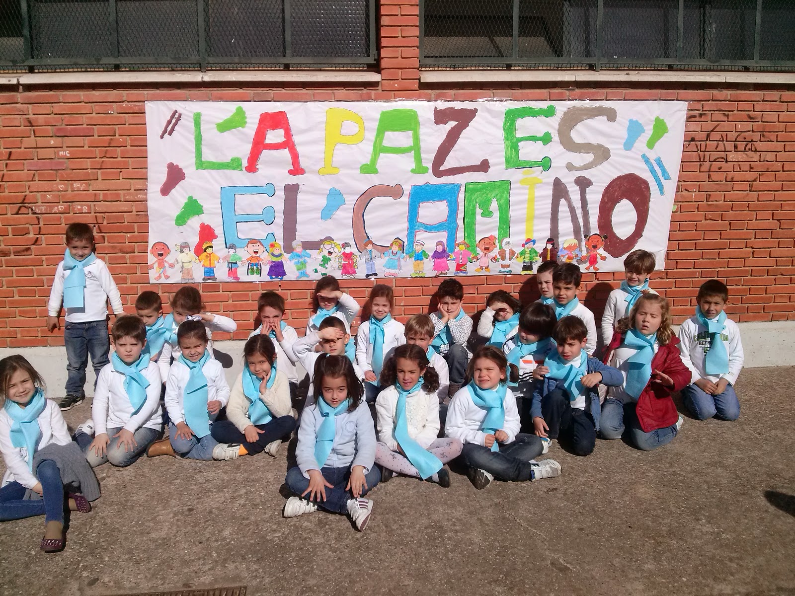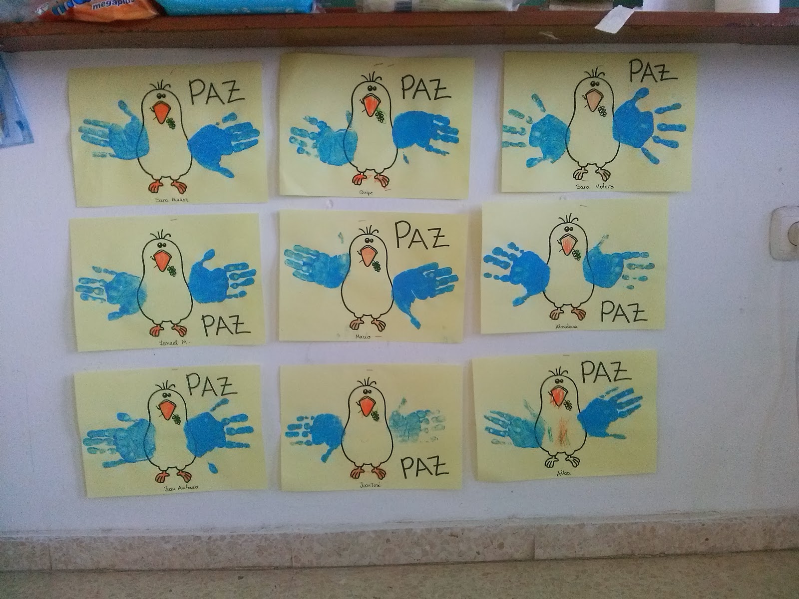 A continuación, tenemos varias fotos sobre el Dia de la Paz que celebramos todo el colegio y nuestros peques bilingües con un poster donde se representa un arco-iris y el trabajo cooperativo.